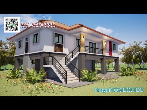 แบบบ้านสำเร็จรูปบ้านชั้นเดียว: บ้านชั้นเดียวยกพื้น 5 ห้องนอน 2 ห้องน้ำ